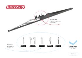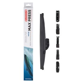 Щетка стеклоочистителя каркасная зимняя SKYWAY MAX PRESS 6 адаптеров в коробке 30см/12" - обеспечивает плавное и легкое скольжение щеток благодаря графитовому напылению. Все подвижные элементы защищены резиновым кожухом, идеальны для суровых условий.