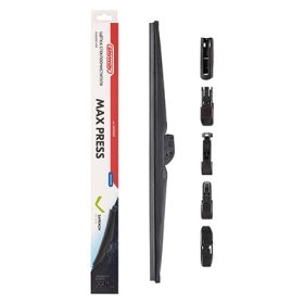 Щетка стеклоочистителя каркасная зимняя SKYWAY MAX PRESS 6 адаптеров в коробке 55 см/22" - обеспечивает плавное и легкое скольжение щеток благодаря графитовому напылению. Все подвижные элементы защищены резиновым кожухом, идеальны для суровых условий.