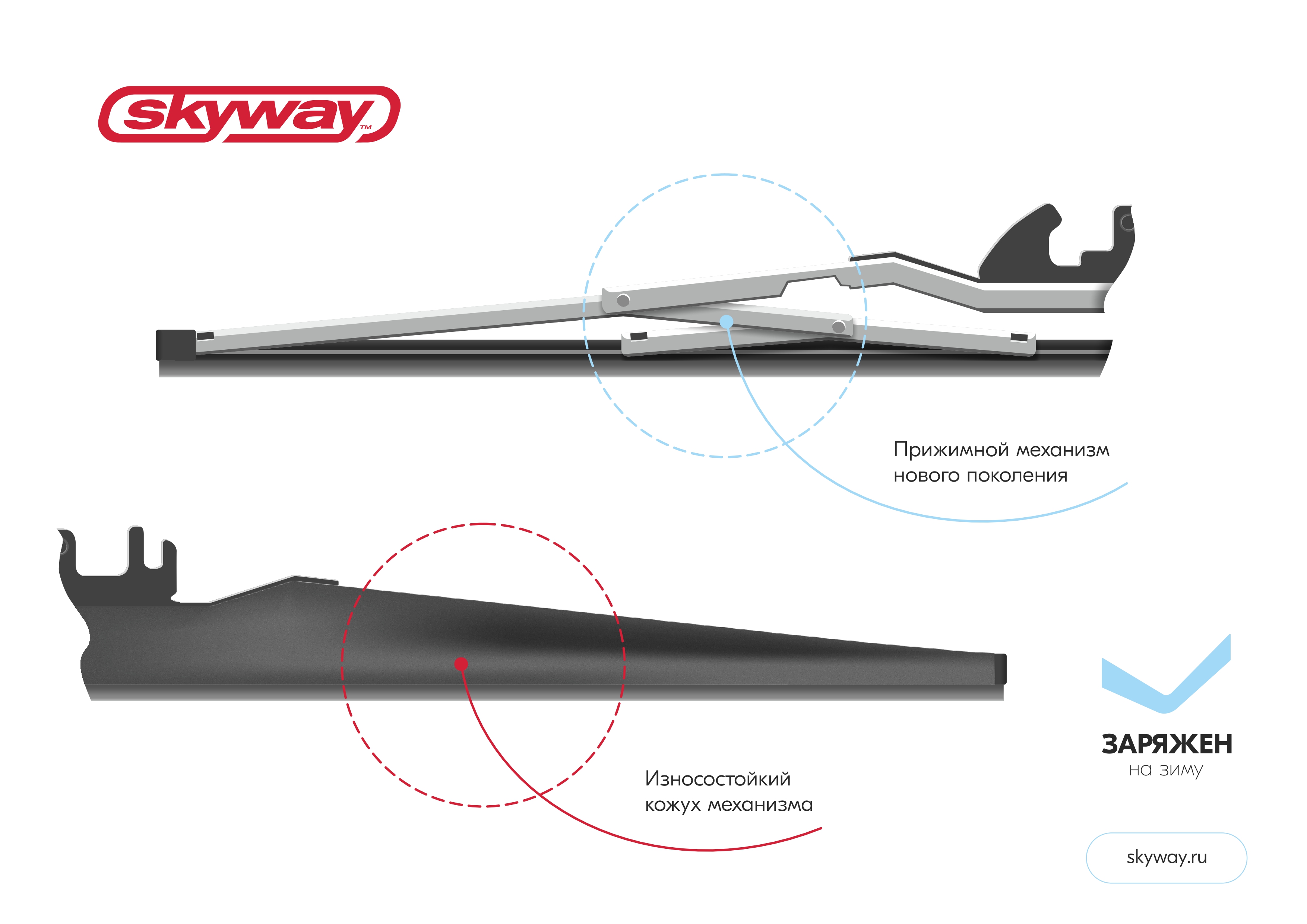 Щетка стеклоочистителя каркасная зимняя SKYWAY MAX PRESS 6 адаптеров в коробке 52,5 см/21" - обеспечивает плавное и легкое скольжение щеток благодаря графитовому напылению. Все подвижные элементы защищены резиновым кожухом, идеальны для суровых условий.